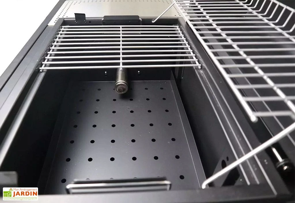 Plus rapide, mais aussi plus respectueux de l’environnement du fait de la non-utilisation de produits inflammables, ce barbecue connecté est également plus économique car il intègre un bac à charbon suspendu permettant d’utiliser 40% de charbon de bois en moins qu’un barbecue classique. Il est également doté de caractéristiques modernes, comme en témoigne la présence d’une prise 220 V et de deux ports USB auxquels brancher un smartphone ou une enceinte, par exemple.