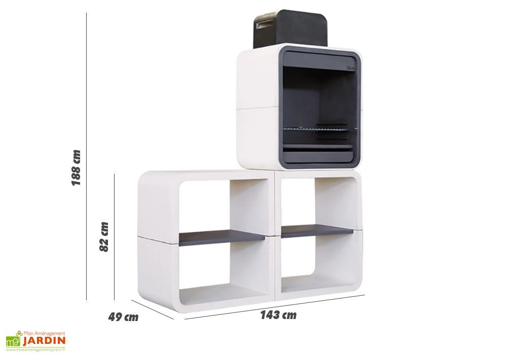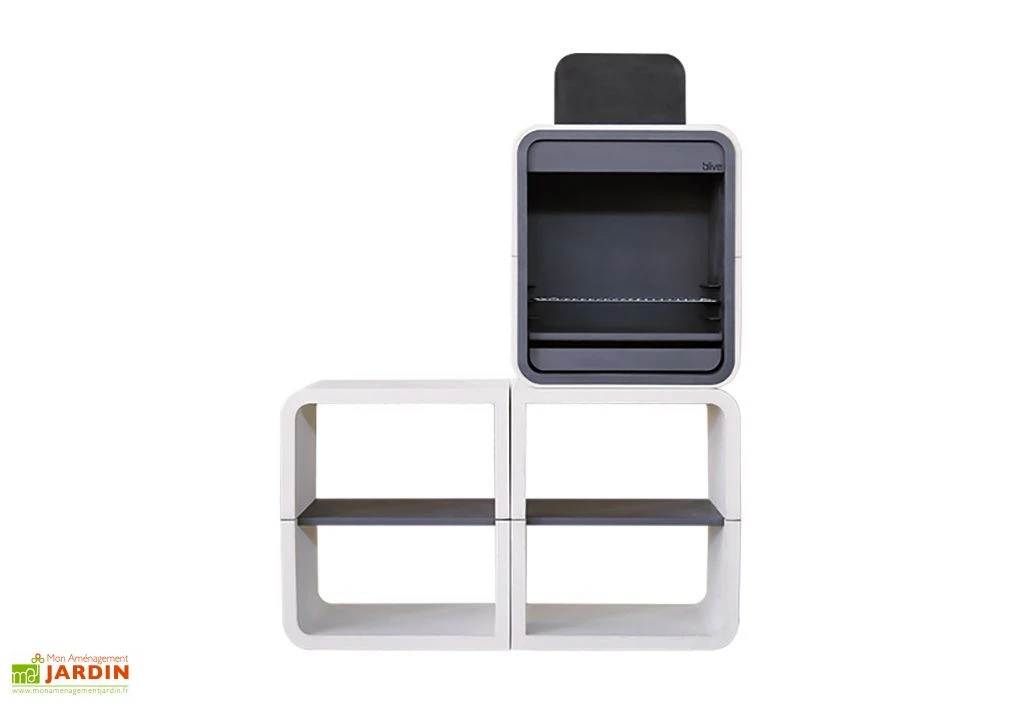 Ce barbecue en béton de chez Blive est composé de trois modules à assembler par vos soins. A la fois moderne et robuste, il est fabriqué à partir de béton fibré hydrofuge, un matériau qui lui permet de résister à l’humidité, au gel et aux agressions extérieures en tous genres sans pour autant nécessiter d’entretien particulier. L’intérieur du foyer du barbecue est pour sa part revêtu de métal traité contre la corrosion et recouvert d’une peinture thermorésistante, ce qui lui assure une grande tolérance aux températures extrêmes.