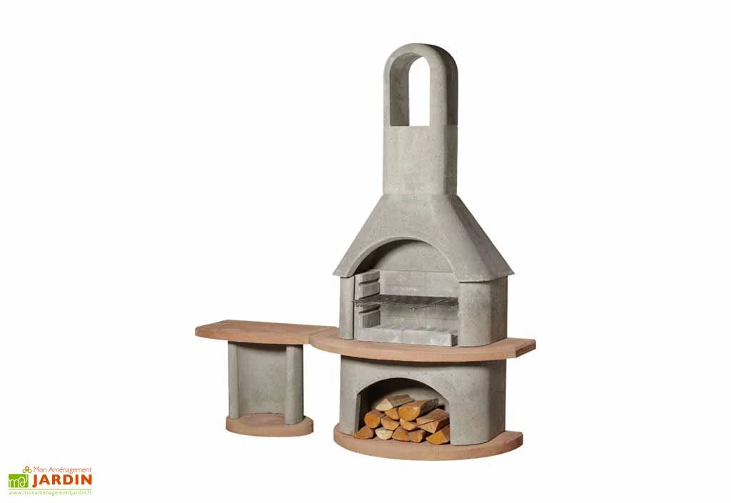 Le barbecue en béton armé à double paroi possède un intérieur en béton réfractaire afin d’éviter les brûlures par contact. Il s’utilise avec du charbon de bois et dispose d’une niche sous le plan de travail pour stocker votre bois. La surface de cuisson est de 54 x 34 cm.