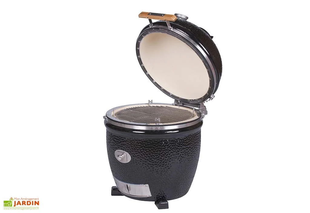 Ce barbecue est en effet doté d’une cuve en céramique, un matériau permettant de retrouver des conditions semblables à celles que l’on retrouve dans un four. La céramique permet également de conserver une partie de l’humidité, pour des aliments toujours tendres. La cuve est de plus équipée d’une ouverture réglable, tout comme le couvercle, afin que vous puissiez adapter la température au type de cuisson souhaité. Le thermomètre intégré au couvercle vous permettra par ailleurs de surveiller la température intérieure du barbecue.