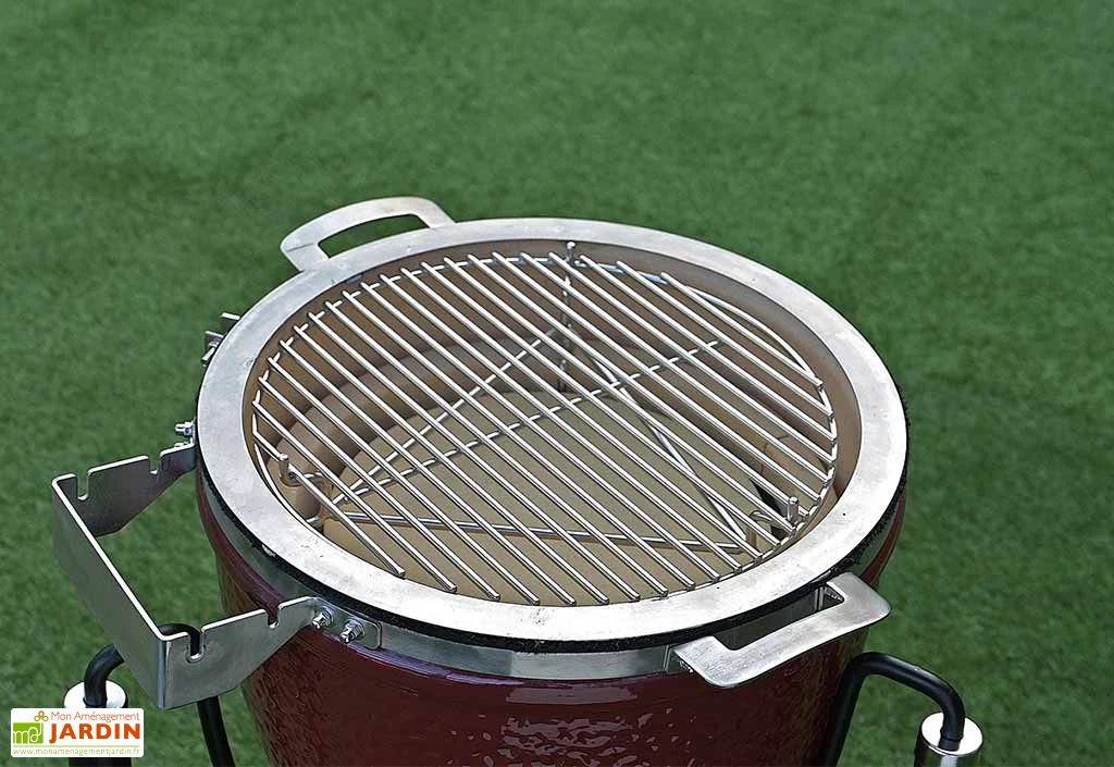 Ce barbecue possède une cuve en céramique, un matériau intéressant qui permet de réguler la température intérieure et de répartir la chaleur de façon homogène, comme dans un four. Une partie de l’humidité est également conservée, ce qui permet de profiter d’une viande tendre, par exemple. Le couvercle et le bas de la cuve sont par ailleurs équipés de deux ouvertures réglables pensées pour vous permettre d’ajuster la température à l’intérieur du barbecue, selon le type de cuisson désiré.