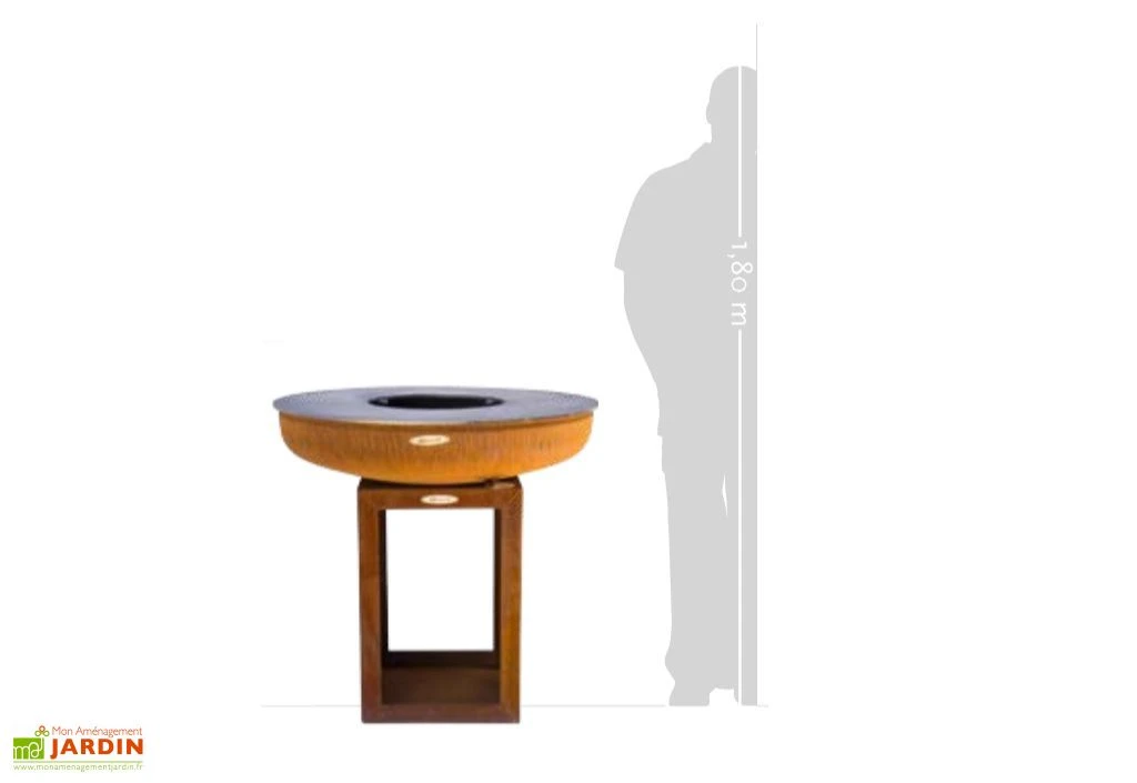 Le braséro extérieur mesure 80 cm de hauteur. Sa plaque de cuisson mesure 82 cm de diamètre et permet de bénéficier de différentes zones de chauffe. Vous pouvez ainsi choisir l’emplacement en fonction de la cuisson des aliments. La zone de chauffe varie entre 100 et 350°.