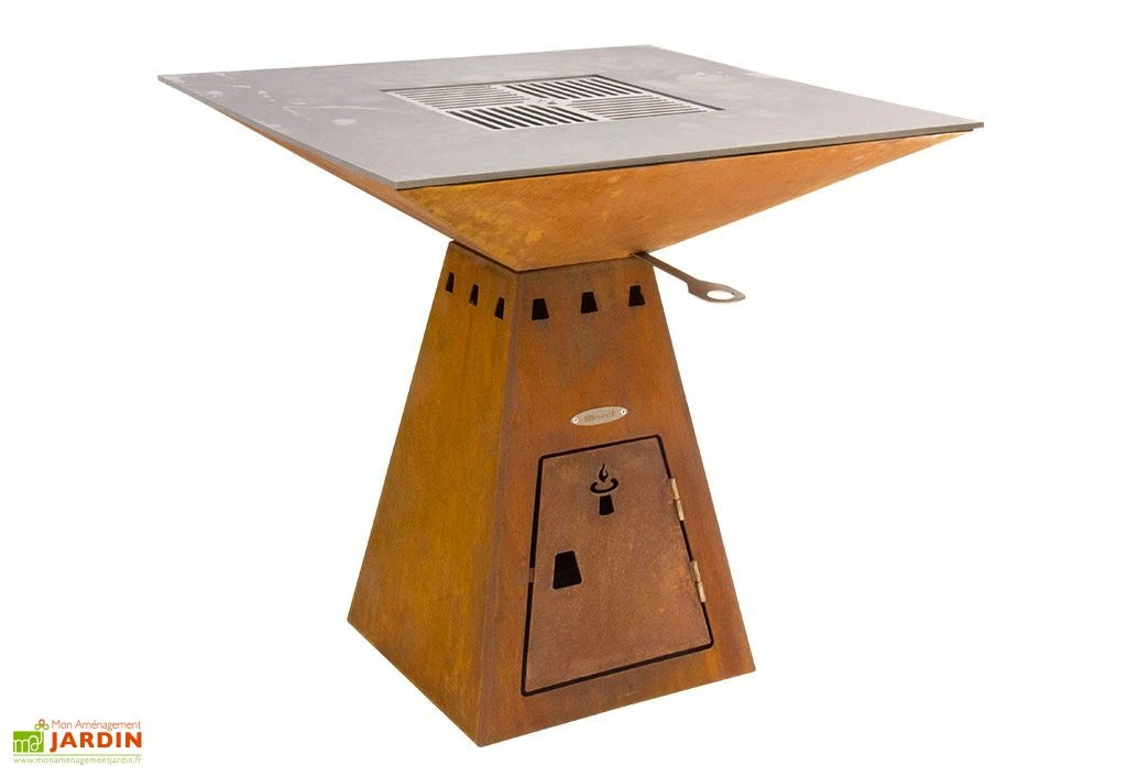 Le corps en acier du braséro est travaillé de façon artisanale et son oxydation volontaire permet de lui offrir un look vintage et vieilli sans pour autant altérer sa solidité. La plaque de cuisson et la grille sont, quant à elles, en inox pour griller vos aliments en toute sécurité. Il n’existe ainsi aucun risque de dépôt de rouille sur les grillades. Le récupérateur de cendre se trouve derrière la trappe de visite. Il est accessible facilement pour une manipulation aisée.