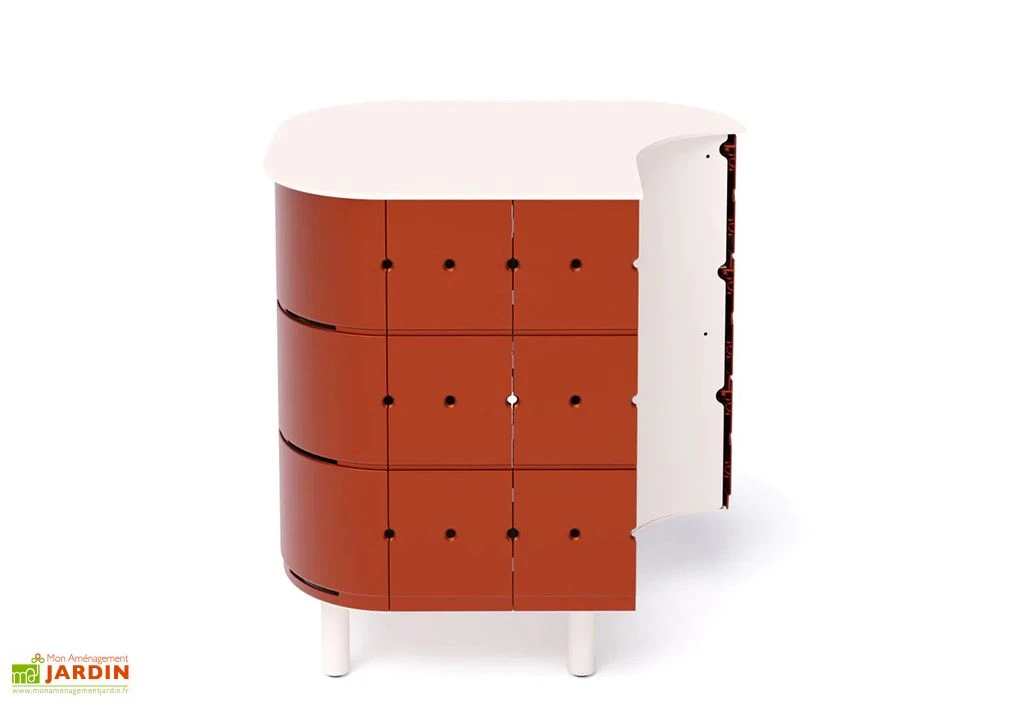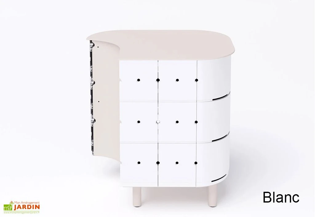 Les parois du meuble Jean sont également en aluminium, ce qui lui confère une grande robustesse et une résistance à toute épreuve. Conçu pour être utilisé en extérieur toute l’année, l’ensemble du meuble de cuisine extérieure est peint avec une peinture époxy anodisée, qui garantit une protection optimale contre les intempéries et la corrosion. La desserte pour barbecue est proposée dans différents coloris au choix.