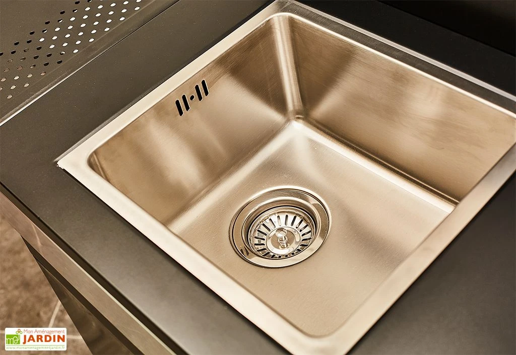 Parfait pour améliorer votre cuisine d’extérieur, cet évier de chez Cook’in Garden est compatible avec les barbecues Fidgi 3 et 4. Il affiche des dimensions de 60 x 57 cm, pour 114 cm de haut et fait un poids de 21 kg.