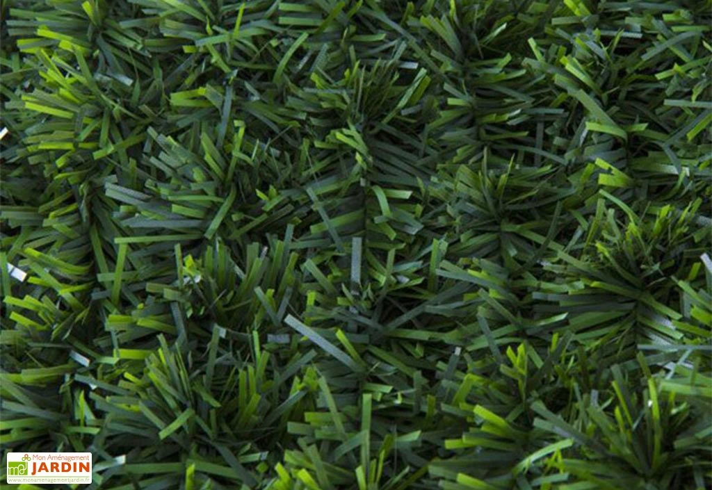 Afin de lui apporter un aspect réaliste, les brins sont de deux couleurs : un vert clair et un vert bouteille. Ils mesurent environ 40 mm de hauteur et 2 mm d’épaisseur. Fabriqué en PVC, ce brise vue en feuillage bénéficie d’une double face.