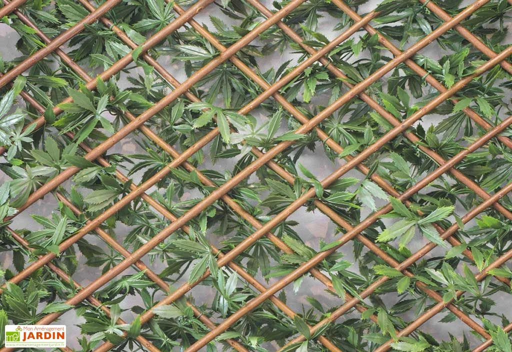 Le feuillage synthétique et son treillis en bois sont parfaitement résistants et ne vous demandent aucun entretien. Ils sont garantis anti-UV pendant 9000 heures, ils résistent au vent en laissant passer l’air pour éviter les prises au vent et ils résistent à l’eau.