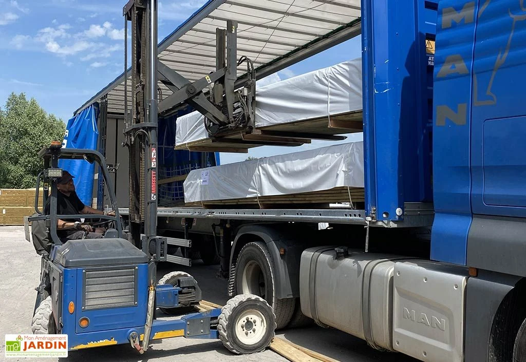Les lames et les lambourdes sont livrées sous forme de colis filmés et cerclés qui seront déchargés devant votre domicile.