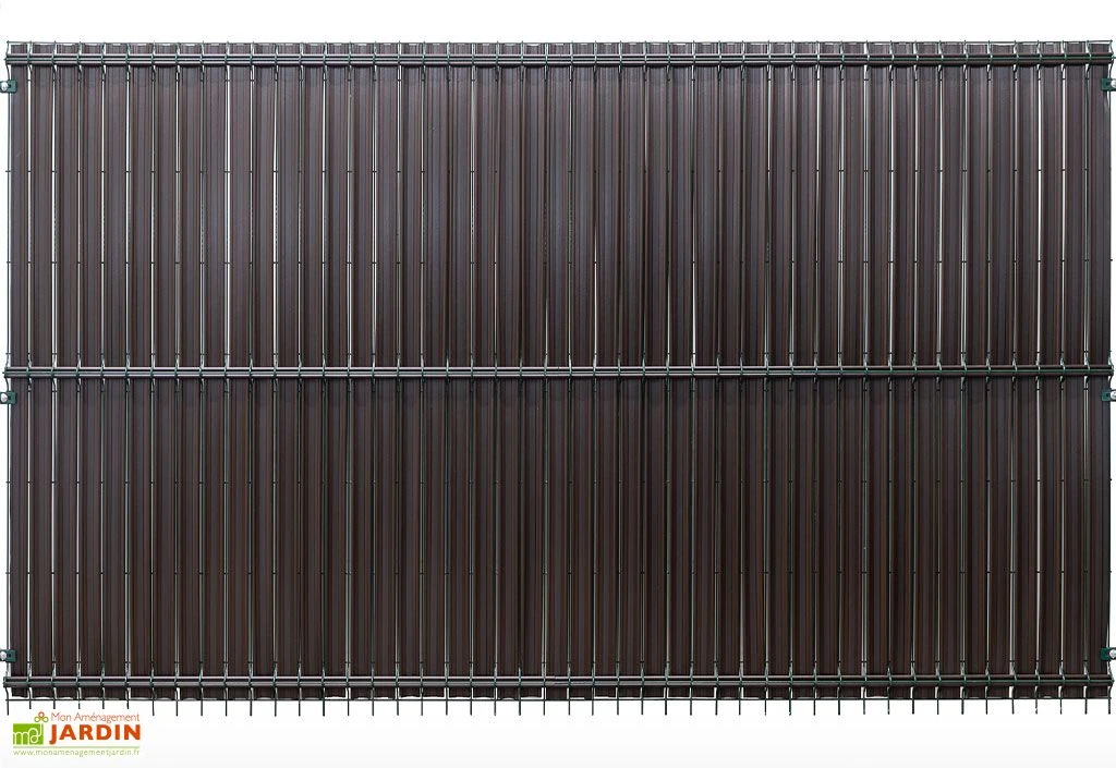Ce kit d’occultation pour grillage rigide Rattan Art se compose de 42 lames verticales et de 3 lames horizontales qu’il suffit de faire glisser dans votre panneau de grillage. Le lot de lames vous permettra de couvrir tout un panneau de 2,50 m de longueur puisque la largeur de chaque lame peut être réglée entre 47 et 60 mm. Elles mesurent 1,73 m de hauteur.