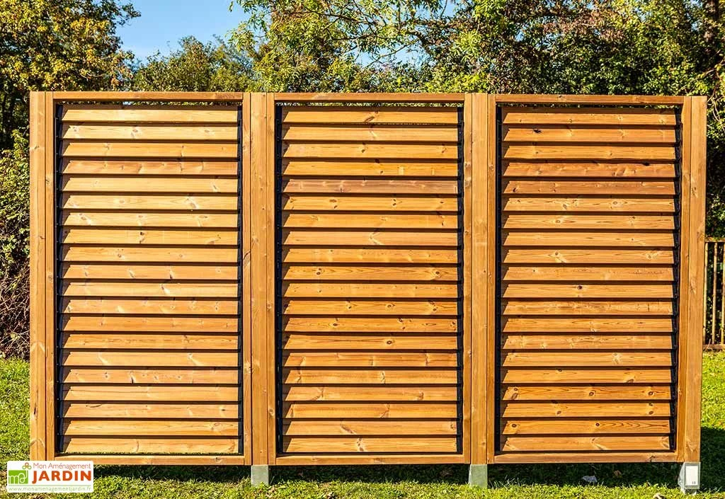 Livré à l’unité, ce panneau brise-vue Habrita mesure 1 m de long pour 2 m de haut. Il est constitué de ventelles mobiles et orientables, à l’image d’un store vénitien, conçues en bois thermo chauffé. Ce traitement à très haute température permet de protéger le bois contre l’humidité, le pourrissement et les attaques d’insectes. Le bois utilisé est par ailleurs certifié PEFC, ce qui signifie qu’il provient de forêts gérées de manière écologique.