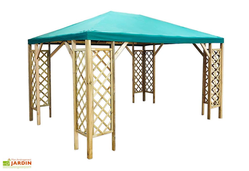 Cet abri vous permettra de profiter de votre jardin par tous les temps grâce à la toile dont il est doté. Il est également équipé de treillis sur les côtés que vous pourrez habiller de vigne vierge, de lierre ou encore de clématite si vous souhaitez profiter d’une note fleurie.