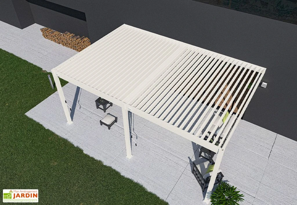 Pergola Bioclimatique Ombréa En Aluminium 4 X 6 M Adossée – Blanche