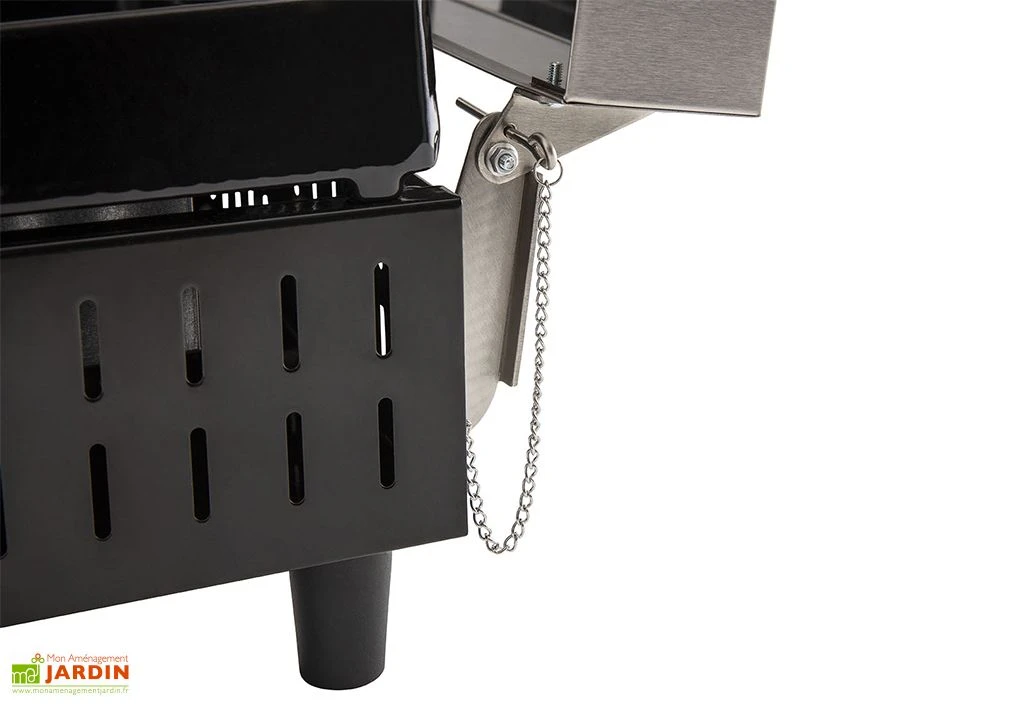 La plaque en fonte émaillée mise en place sur le barbecue électrique de 2,5 kW permet de cuire tous les types d’aliments en toute sécurité grâce à ses bords relevés. Un récupérateur de graisse avec tiroir en inox frontal amovible situé en dessous de la plaque facilite le nettoyage de la plancha. Cette dernière dispose d’un thermostat sur 5 positions afin de régler à bonne température la plaque.