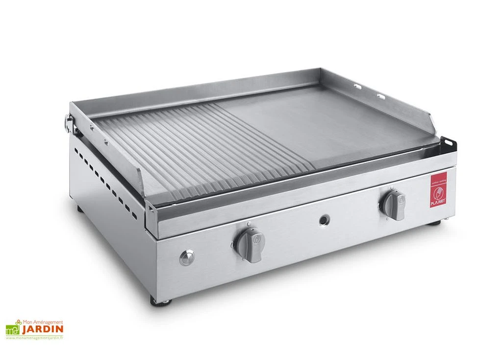 La plancha au gaz de PlaNet est entièrement en inox, un matériau qui permet une structure résistante et une plaque que cuisson performante. Elle mesure 54 cm de longueur, 50 cm de largeur et 20 cm de hauteur et fonctionne aussi bien au propane qu’au butane.