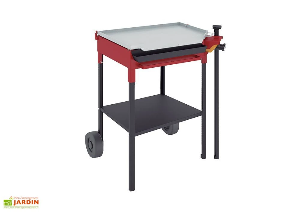 Fabriquée en Espagne, cette plancha à gaz est montée sur chariot, ce qui lui permet d’être déplacée sans effort. Elle est dotée d’une plaque de 58 x 43 cm, pour 5 mm d’épaisseur, conçue en acier au carbone et qui pourra être ajustée selon trois positions.