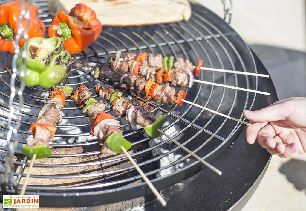 Le trépied en acier de La Hacienda mesure 172 cm de hauteur. Il s’installe au-dessus d’un braséro pour le transformer en barbecue. La grille de cuisson en acier chromé mesure 65 cm de diamètre. La grille est réglable en hauteur pour s’adapter au mieux à votre braséro.